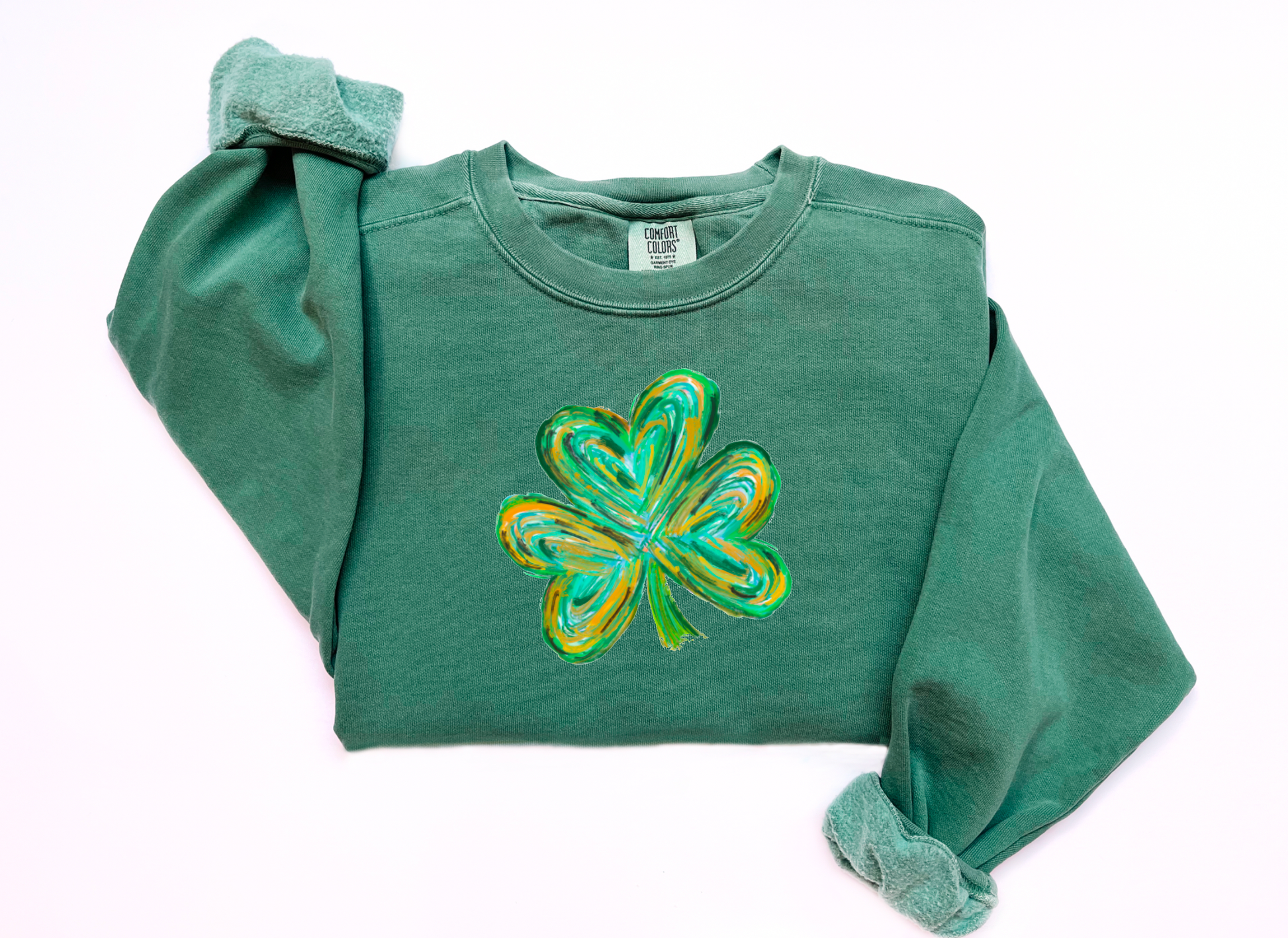 Watercolor Shamrock Clover Comfort Colors Sweatshirt
